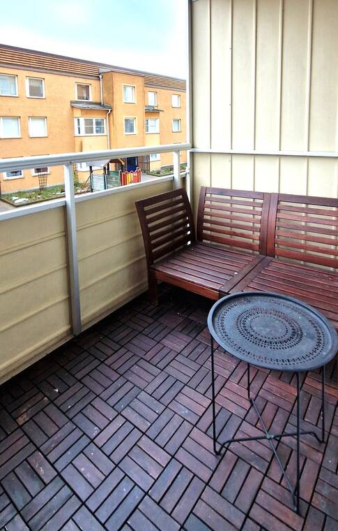Balkong i sydväst. Nytt vackert trägolv nyligen inlagt.